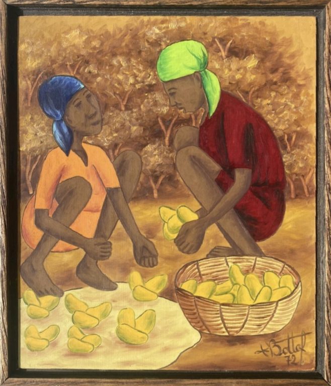 Henry Bottex – Mango Harvest Scene – Oil on Panel, 1972, Haitian Master